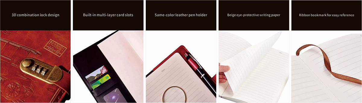 Tämä lukko -päiväkirjat on varustettu hienolla metalliyhdistelmälukkolla. Se ei ole vain fyysinen este, vaan myös lempeä sisämaailman vartija.