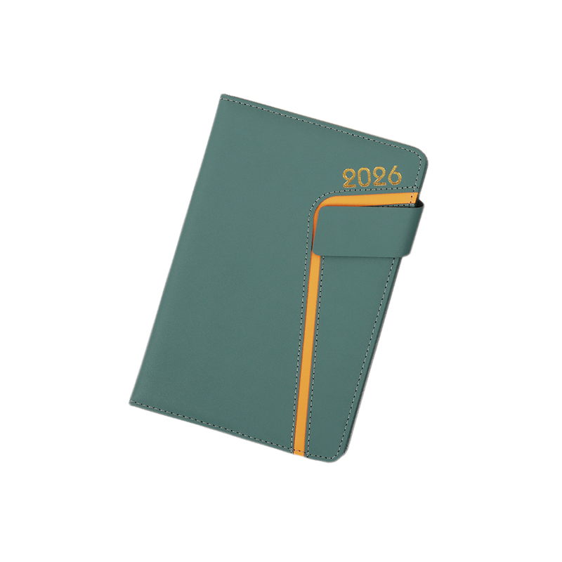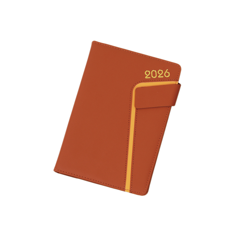 Tässä saksalaisessa esityslistan kirjassa on herkkä PU-jäljitelmänahkakansi, kultaleimattu 2026-logo ja sivussa oleva kirkkaan oranssi viiva. Se on sovitettu neliömäiseen vinoon magneettiseen solkiin. Koko kansi on kääritty sienellä vuoratulla harmaalla levyllä, joka on pehmeä ja mukava koskettaa.
