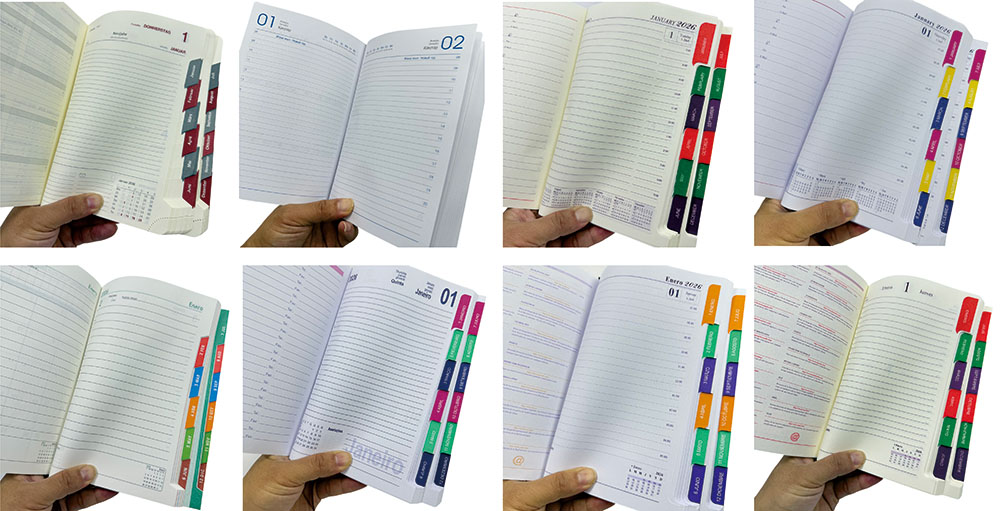 Kohdehakemisto -sivu: sivuhakemistotarra -sarakkeiden kuukausi, asetettu 2 väripalloa, etsi päivämäärä nopeasti.