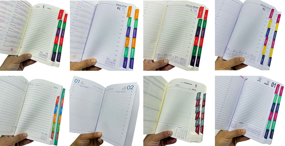 Kuukausittainen aikataulun tietue on erittäin huomaavainen, ja siinä on varattu "Urgente" -sarakkeet, jotka auttavat sinua priorisoimaan tehtäviä. Värillisen kuukauden hakemistotarra hyppää vastaavaan kuukauteen yhdellä napsautuksella, eikä sinun tarvitse enää huolehtia tietueiden löytämisestä. Riippumatta siitä, kirjataanko inspiraation hetki, työ tai pienen onnellisuuden elämässä, se voidaan tallentaa kunnolla, jotta päivät voidaan jäljittää.