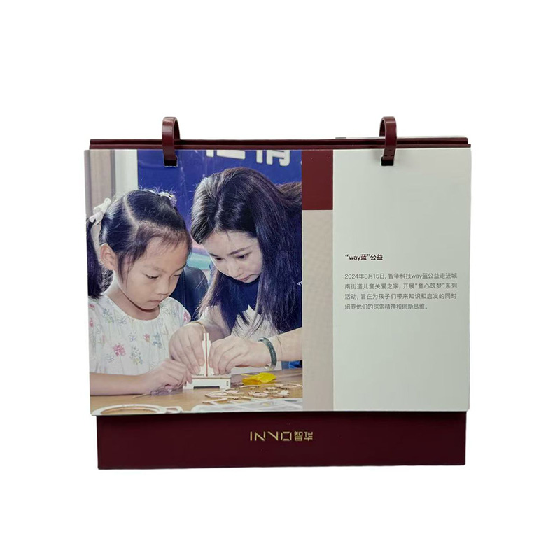 Laadukkaasta paperista valmistettu viininpunainen kansi on pariksi kovera kullan leimaustekniikka. Sanat "2025 Teknologinen innovaatio Kaunis matka" ovat yksinkertaisia ja tyylikkäitä. Sidottu metallirenkaisiin, se muuttuu sujuvasti ja on vakaa ja kestävä. Asetettu työpöydälle, se