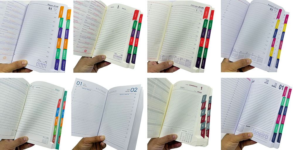 Sisisivuilla tehdään yhteenveto henkilökohtaisista tiedoista, 2026-2028 kalenteri, 2026 amerikkalaiset kansalliset vapaapäivät, muuntopöydät, kansainväliset hotellihakemistot, vuosisuunnitelmat, Internet-haut ja muut rikkaat tietosisältöä. Kalenterisivut jaetaan hienosti kuukausittain, viikolla ja päivällä varattujen hätäpylväiden ja sivuvärikuukauden tarrojen kanssa nopeaan selaamiseen. Se on läheisesti sopiva työkalu työhön ja elämän suunnitteluun sekä jokapäiväiseen elämään, joka auttaa sinua järjestämään jokaisen ajanjakson vuonna 2026 riippumatta siitä, onko kyseessä työtehtävää, elämän hauskaa tai merkitsemällä tärkeitä lomia, se voi olla helposti pätevä. Espanjan version muistikirjasta on tuottanut Aiyide Stationery Company.